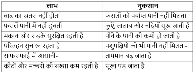 2. वर्षा ऋतु में कम वर्षा होने पर क्या-क्या लाभ और नुकसान होते हैं, आओ, इस तालिका में उल्लेख करें :