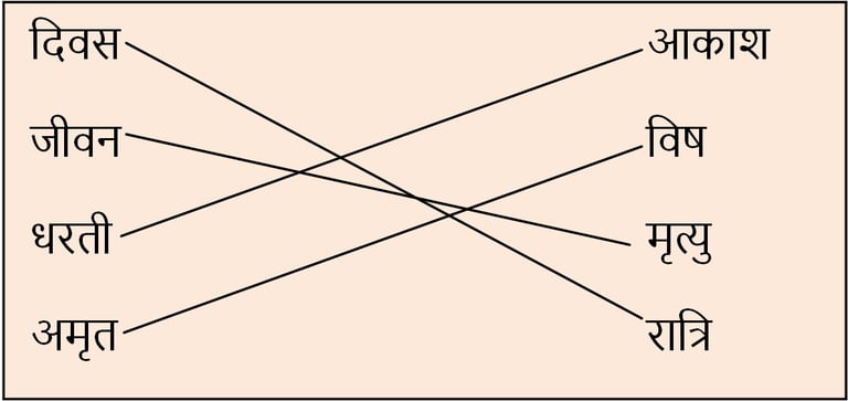 3. निम्नलिखित विलोम शब्दों को रेखा खींचकर मिलाओ :