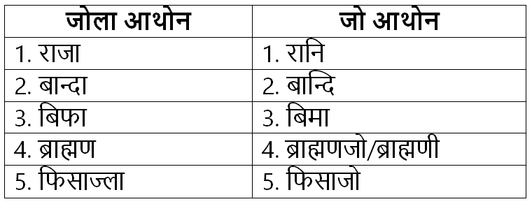 (क) मुनिया मेगन मोसेबहाबनानै इसोरखौ धियान खालामदों। बे समावनो राजाया मुनिनियाव दै बिबाय ।