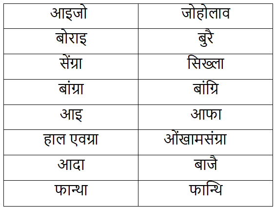 (ख) आइजोफोरखौ गोहो गोरा खालामनाय गुबुन गुबुन बिथांखिफोर आरो बेनि खामानि।