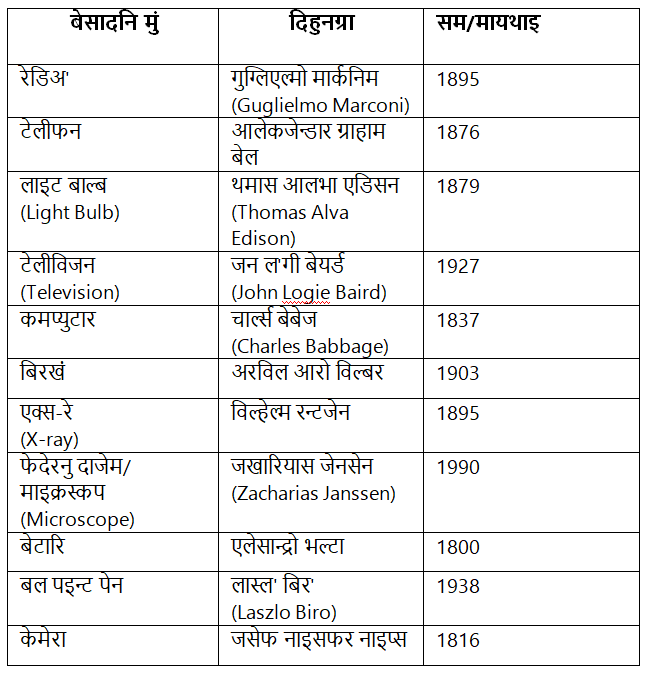 बिगियान सास्त्रआ गियाननि बाख्रि । बिगियाननि हेफाजाबआव मानसिया गोमोथाव सोमोनांथाव खामानि मावदों। आथिखालाव बिगियान फरायसंनायनि गेजेरजों गोबां जौगानो हादों। रेल, जाहाज, टेलिग्राफ, फट 'ग्राफ,