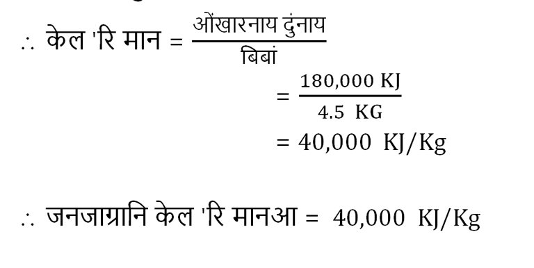 फिन:- मोनसे जनजाग्रानि केल 'रि मानखौ फोरमायनाय सानगुदिनि मुं आ किल'जुल/ किल 'ग्राम (KJ/Kg) ।
