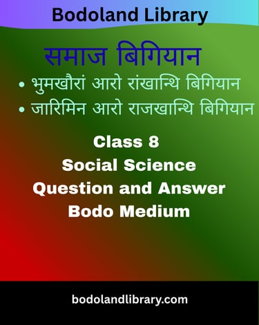 Bodoland Library provides SEBA Class 8 Social Science Bodo Medium Questions Answers as per the new SEBA syllabus to help Bodo medium students understand every chapter clearly and score better in exams. These solutions cover all important topics of Geography, Economics, History, and Political Science from the Class 8 Social Science textbook, with simple and easy explanations that make learning more effective. Whether you are revising for exams, completing homework, or strengthening your concepts, these Class 8 Social Science notes will guide you step-by-step. This study material follows the updated SEBA syllabus and is ideal for both self-study and classroom support for Bodo medium learners.